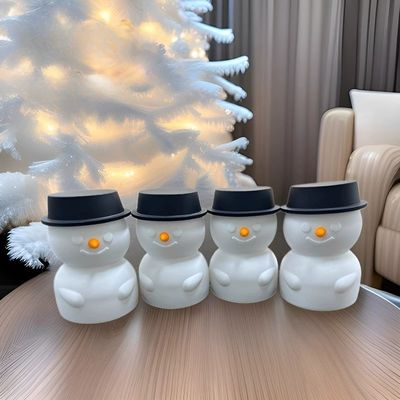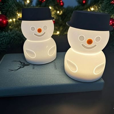 USB充電付きタッチキッズナイトライト、LED照明雪だるま卓上装飾、調光可能なシリコンライトアップ保育園ナイトライト(赤いクリスマスハット)