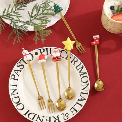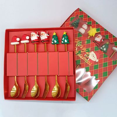 カスタム 長いハンドル シリコン クリスマス スプーン&フォークセット 食品級 シリコン+304ステンレス ◎子供と大人のための休日のカートン 食器